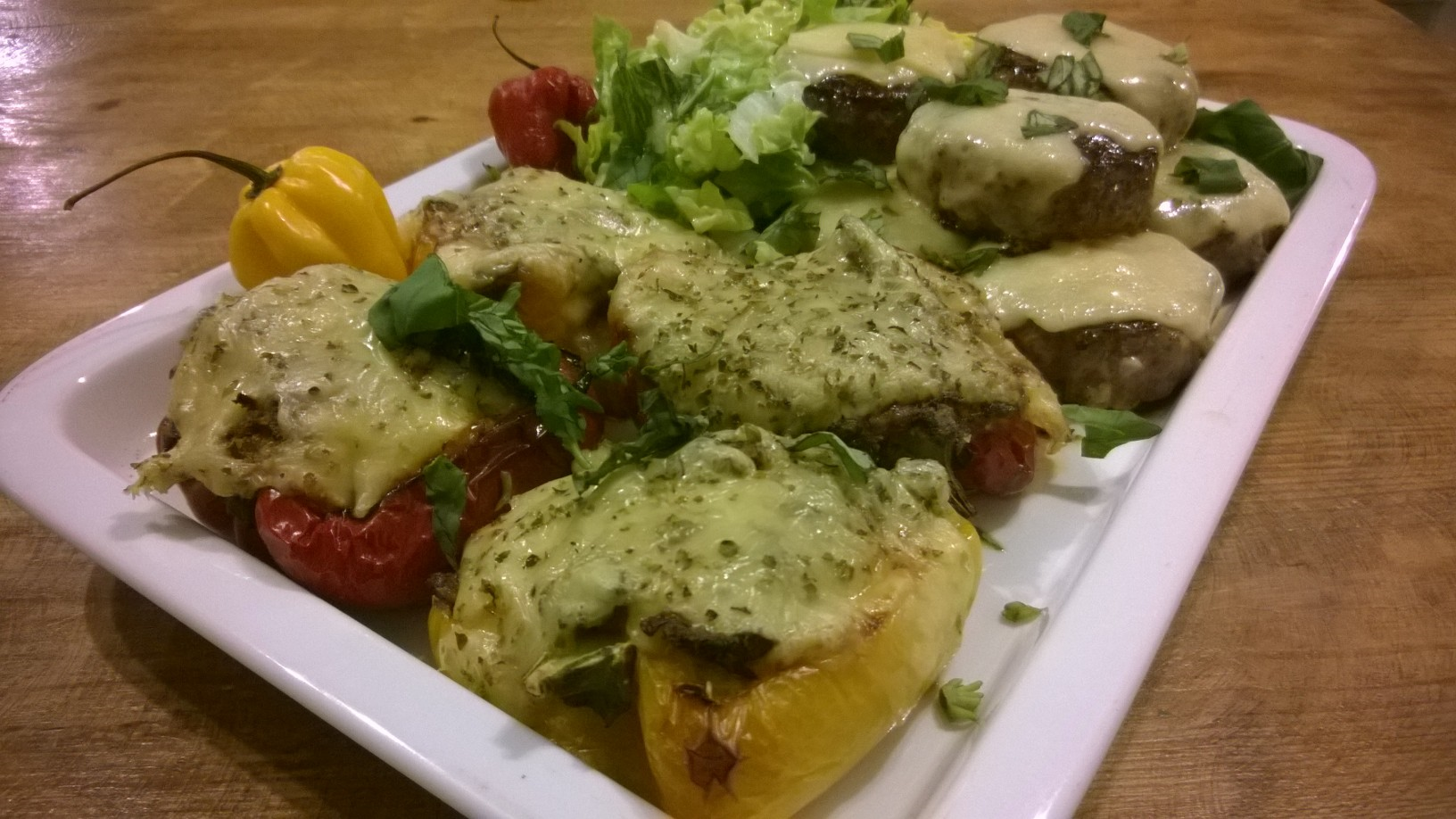 Peppers provide a great opportunity to use up odd bits & bobs which might otherwise prove insufficient to make it on their own. If you don’t have a pre–made mix to use up, then combine what you do have; mix it with a bit of cheese, and hey presto, Bob’s your uncle! Great combinations include tomato, ham & blue cheese, mushrooms, spinach & goat’s cheese, or even mackerel leek & parmesan. Left-over cauliflower-rice or zoodles can happily find a new home; and a second benefit is that all options make you look like a gastronomic superstar! What creativity! The choice is endless!