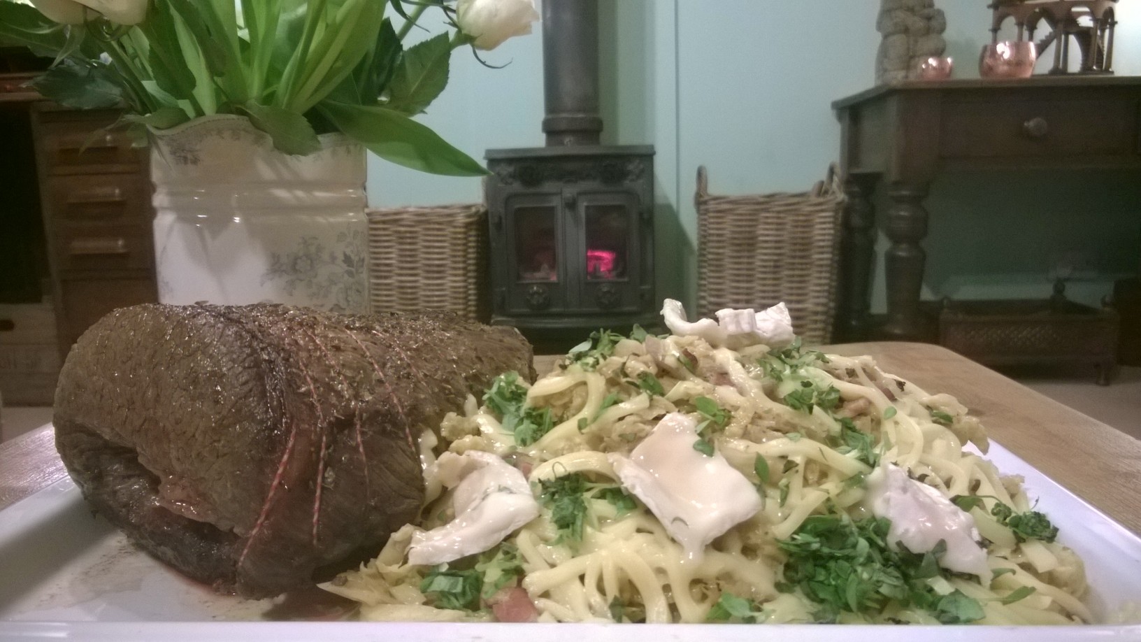 I’ve teamed this with a quick gratin of mixed vegetables – cauliflower, green beans and beansprouts; gratinated with halloumi and cambozola. The ingredients here are infinitely variable, but I find the taste combination of the salty halloumi and ‘gamey lamb’ to be one that’s wholly sublime. As long as you chop the vegetables into pieces no thicker than a green bean, you can use any vegetable e.g. peppers, onions, mushrooms, celeriac, courgette; even kale!