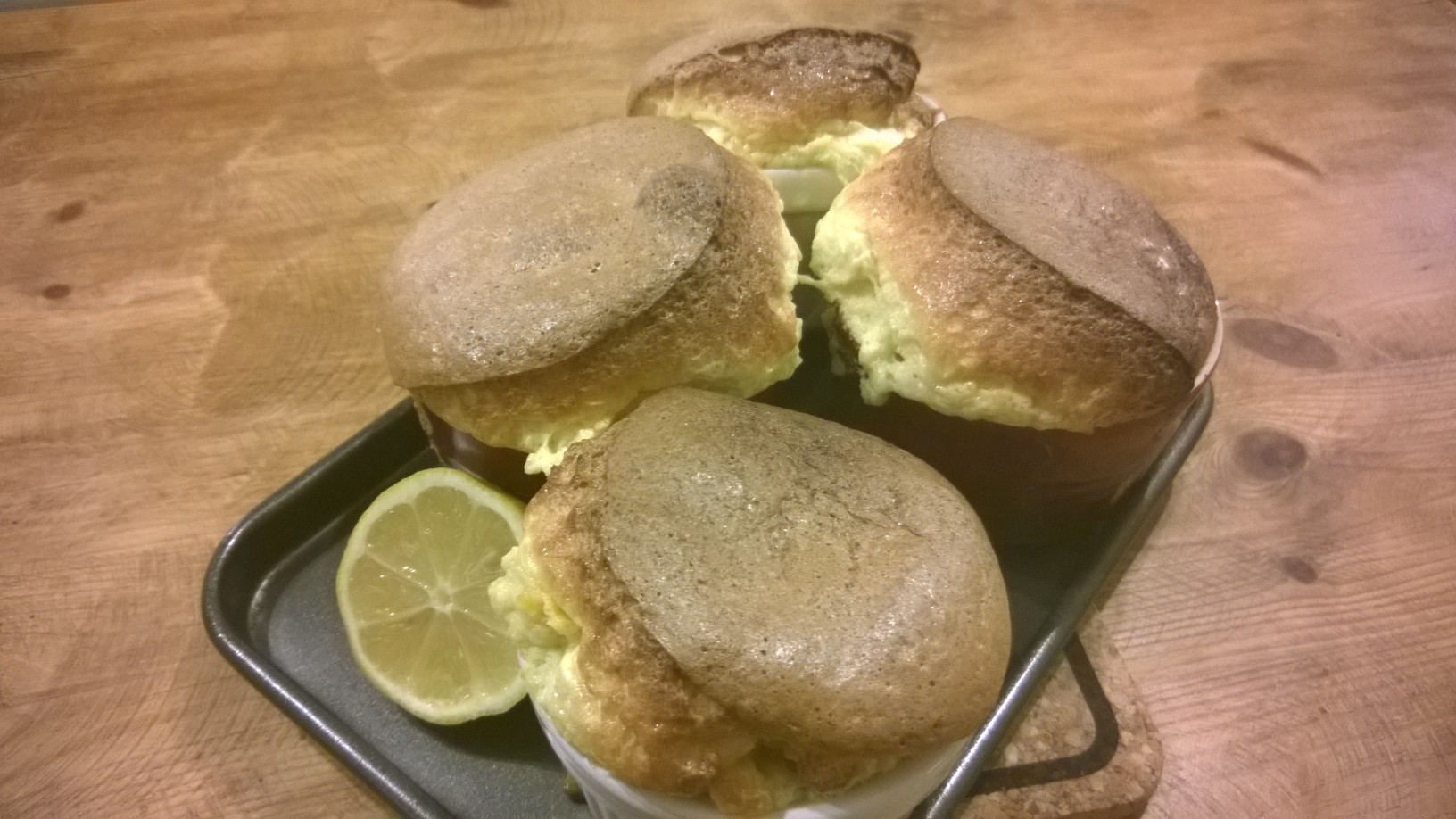 When you cook an egg it turns from liquid to solid. You see this when you fry an egg, scramble it, poach it &tc. It’s the protein which solidifies in heat; and a soufflé is no different from this. The act of a soufflé rising is the same as a standard cake. Hot air rises, which lifts the mixture upwards. Then, once the right temperature is reached, the heat solidifies the egg-proteins and the air-bubbles are ‘locked’ in place. Meringue has the same process – the proteins form a hard, crystalline structure which supports and holds up the rest of the mixture – quite simple, and quite marvellous!